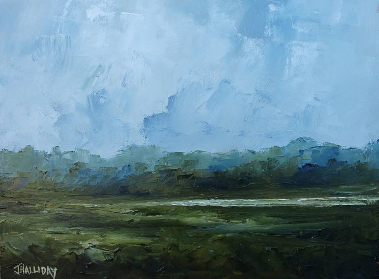 John Halliday's love of the coastline and the rugged countryside is evident in his paintings. The artist, who resides in the United Kingdom, aims to capture an impression or a feeling in his landscapes and seascapes, as represented by dramatic skies and weather. Halliday feels that by using fewer brush strokes, his pieces convey more emotion. He creates using oils on canvas.