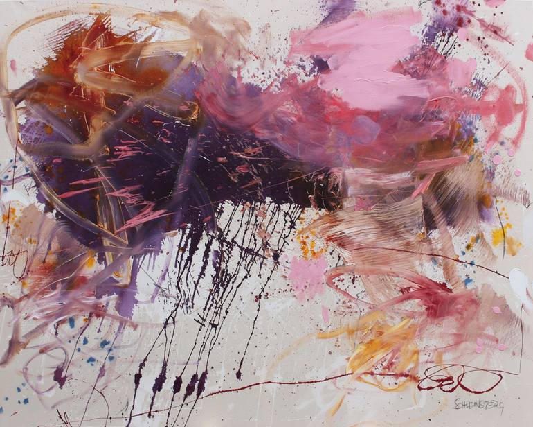Title: CARRIED AWAY BY PURPLE CLOUDS Size: 160 x 200 cm | 63 x 78.7 in Sides: not painted but with paint from the painting process Frame: unframed, ships rolled in a tube and needs to be restretched by your local framer* Signature: front and verso, also signed Certificate of Authenticity Year: 2023 ...
