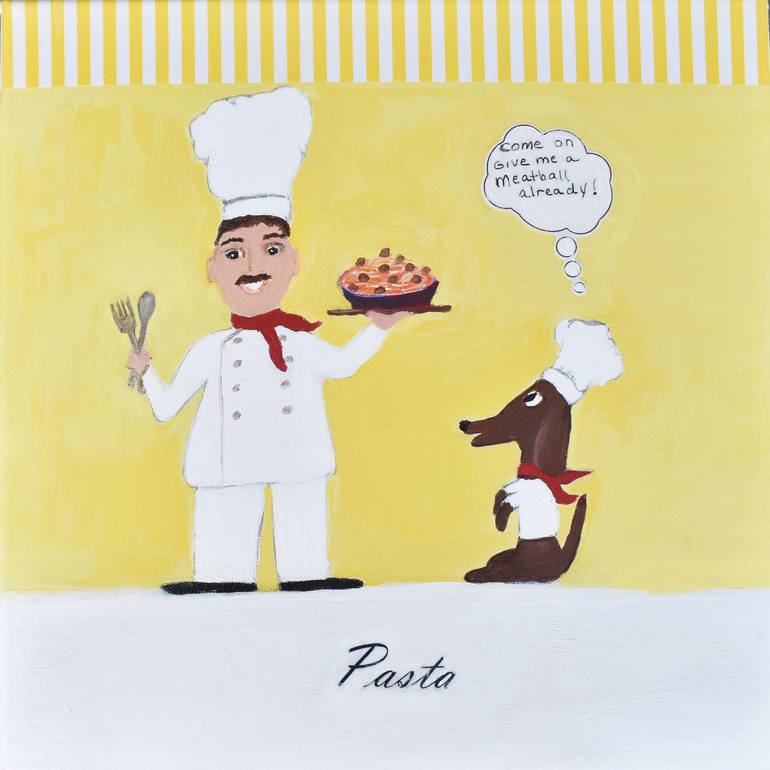 My father inspired me to create a collection called, "CHEF & LITTLE ROCKY" When I was five yrs old my dad bought me a Dachshund. He always made everyone laugh. I hope my art makes you smile. I chose Acrylic paint on canvas.
