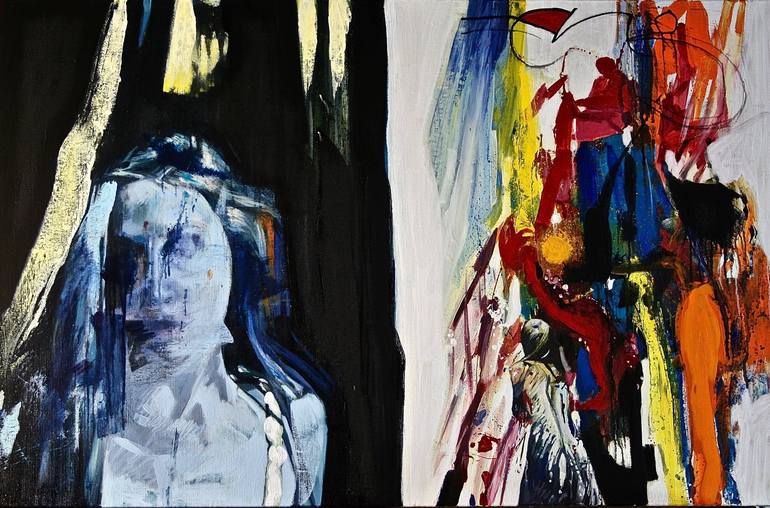 Cette peinture m'a été inspirée par le visionnage du film de Paolo Sorrentino : 'La grande belleza'. Où une gamine rageuse éclabousse de seaux de peinture colorée une immense toile blanche (elle-même couverte de peinture), avant d'organiser la surface, calmement. Un sain exutoire. This painting was ...