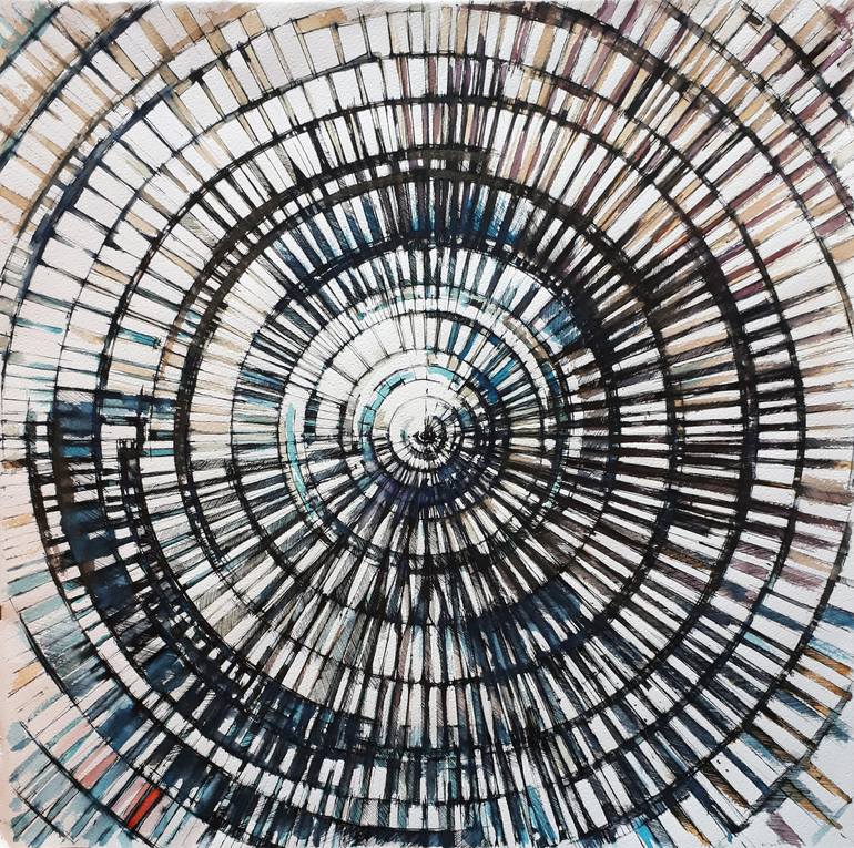 This is a graphic painting, made with ink and watercolour on paper Fabriano Watercolor. The artwork is signed on the back and the certificate of authenticity is added. This is an artwork from the series "Circum". It refers to the shape of a circle, while the circle is seen not only as a geometric ...