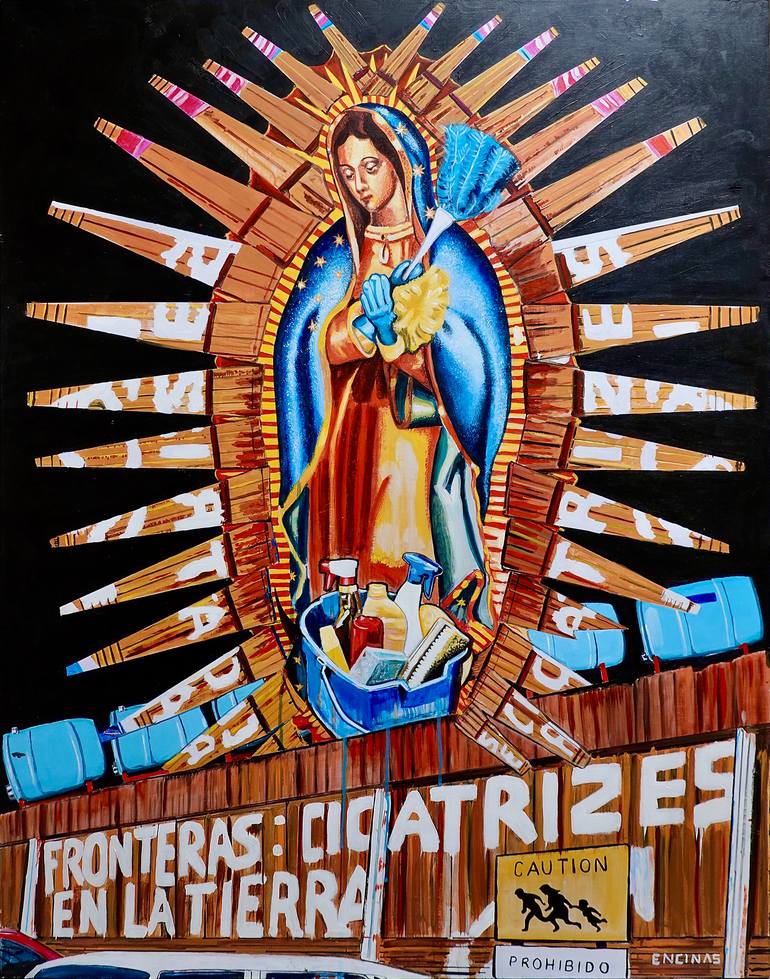 Inspired by La Virgen De Guadalupe, immigration issues, border fence, photography