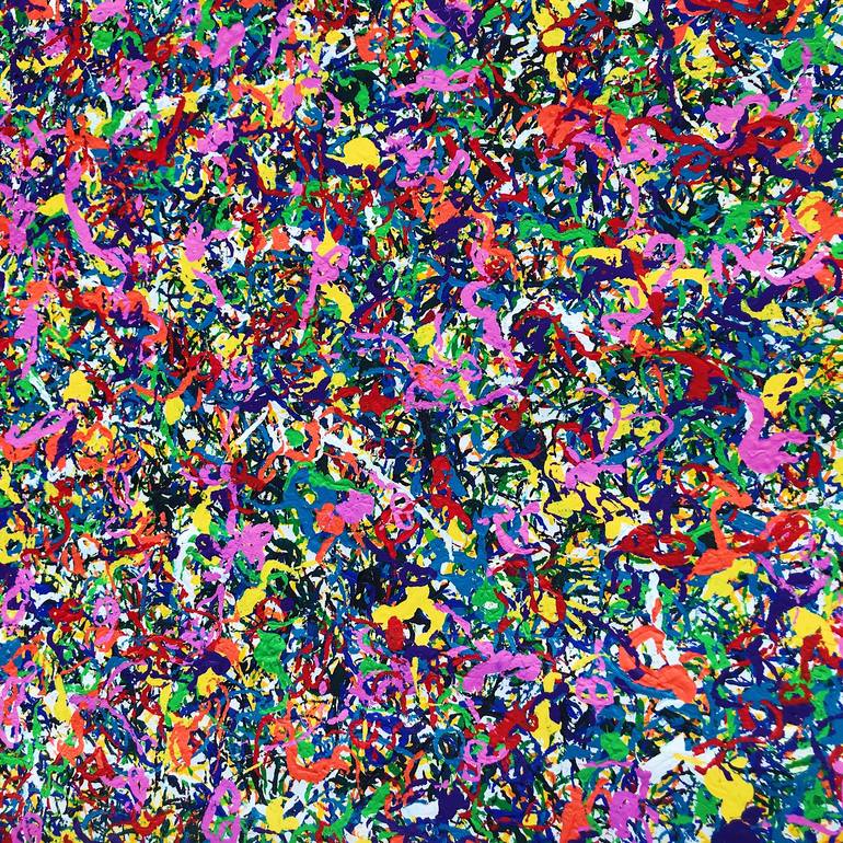 Michaela Hanelova works and lives in Prague, Czech Republic. The artist has described her works: „My canvases express my profound understanding of time and place, history and contemporaneity“. To achieve forms, which are impossible to achieve by standard techniques, she developed her on style using ropes dipped in acrylic paint as well as specific style of brushwork used to apply the paint on the canvas. She is known to create without preliminary sketch, allowing her mind to direct her hands… She states: “The fascinating part of my work with ropes is moving on the edge, defining the precise moment when my canvas is complete or risking to ruin it by a single stroke. On the other hand constant repetition of a simple motif gives me an opportunity to move between consciousness and subconscious, clear visions and sudden impulses“. Her works can be seen in private collections mainly in Holland.
