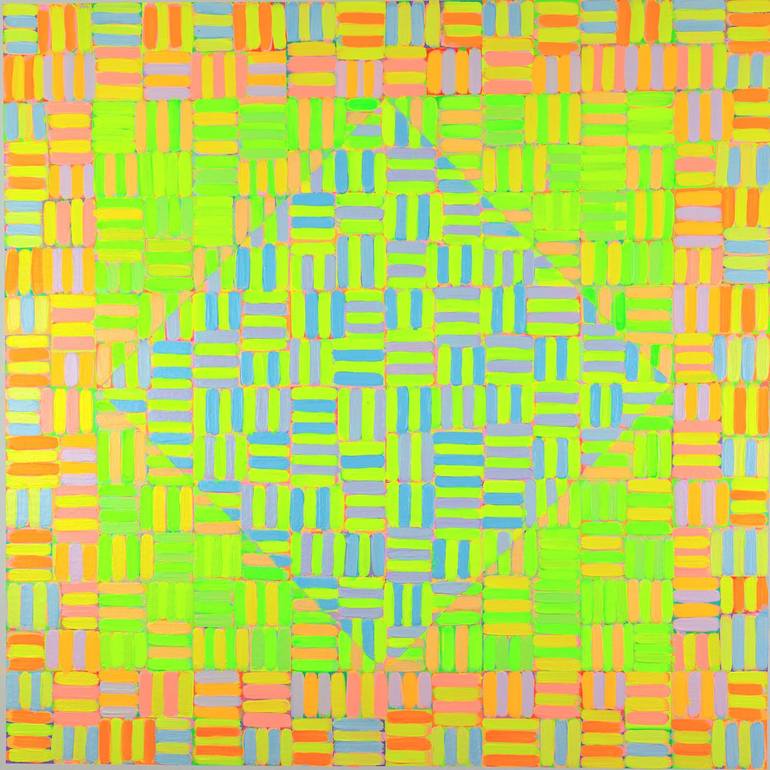 This painting is based around a compositional grid structure. Although formal grid structures have a very sound validation in an art historical context, some artists might find the imposition of such a rigid construct limiting or constraining. For me it is the opposite, the formal grid structure pro...