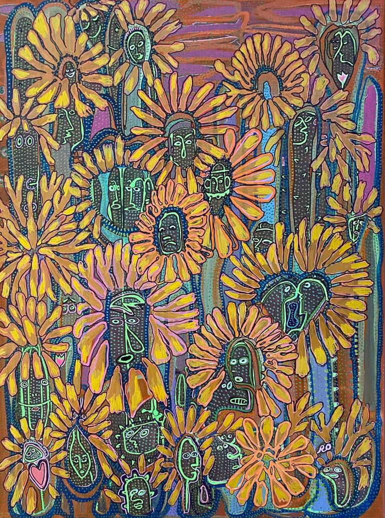 Original painting "Cactus Life" Size: Height 24 x Width 18, Depth 0.8, Inches. Materials:Acrylic on canvas, Acrylic Pens. Subject: Flowers. Style: Impressionism, Contemporary, Modern, Decorative.