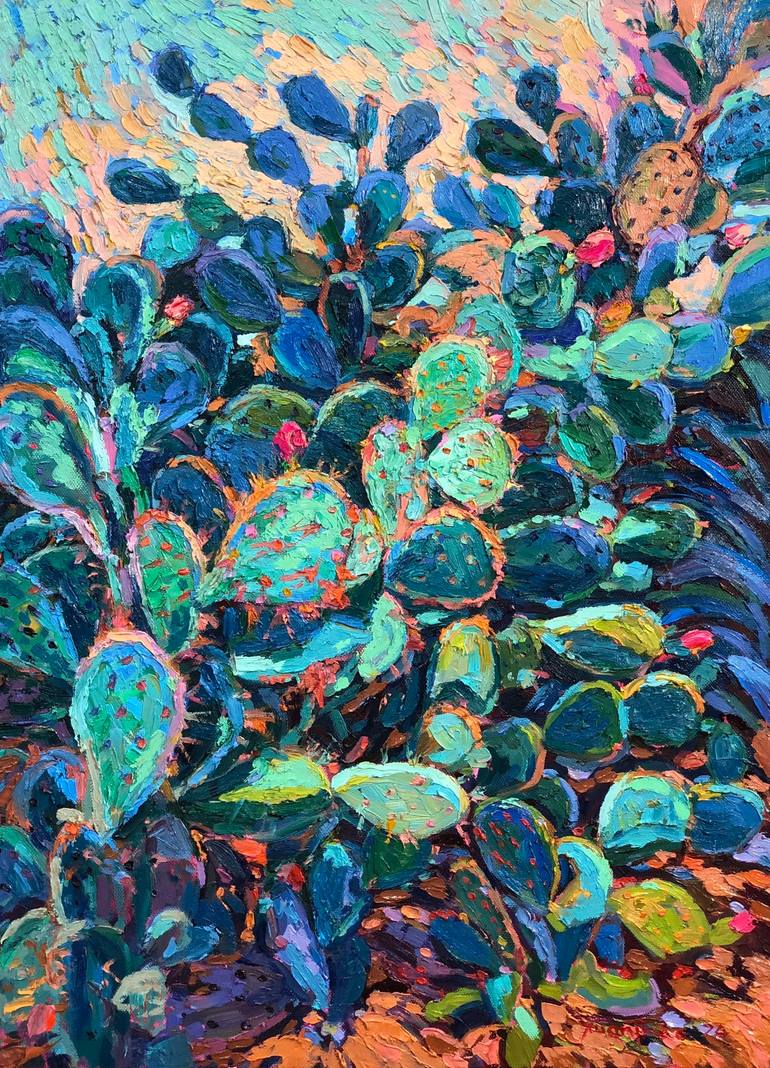Inspiration from cactus bushes along Phu Yen beach. "Cactus dance" is an original oil painting on canvas.