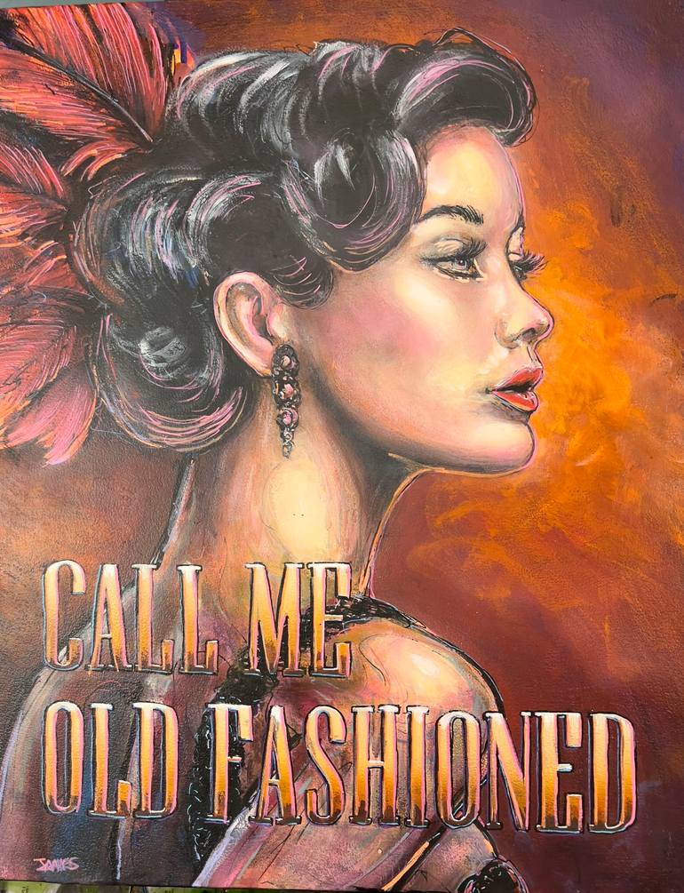 This painting represents the 1920's style speak easy club's. The bold lettering painted directly on the artwork says "call me old fashioned" is meant to bring to mind different feelings, of art, alcohol and stye of living. The artwork was painted for a client who owns a club in Montreal QC, Canada...