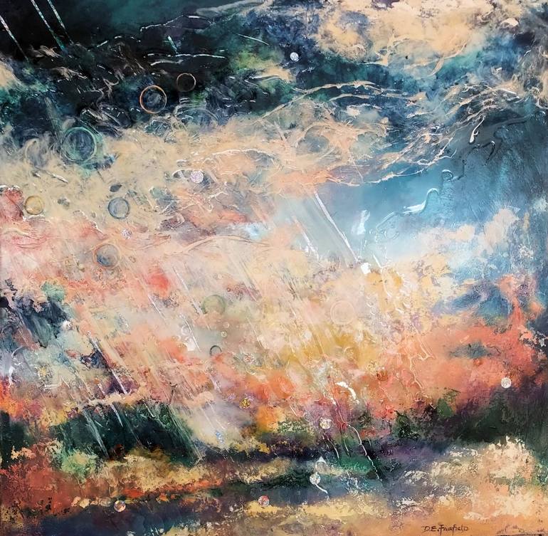 Art can make the invisible visible. My passion is expressing the majesty and mystery, beauty and truth that are revealed through natural and spiritual realms. Life in the intoxicatingly beautiful “big sky” environment in southeast AZ speaks of majesty and mystery and for me inspires the creation of contemporary expressionistic landscapes which often evolve into abstractions. I love the words of Master Painter George Inness who lived in the 1800’s: "I had begun to see that elaborateness in detail, did not gain me meaning.... and produce the sense of spaces and distances and with them the subjective mystery of nature with which wherever I went I was filled. ... I gave way to my impulses and produced sentiments the best I could. . . " To convey the impressions of glory I see all around, I work loosely rather than in detail, using large tools, rarely brushes, and broad strokes to keep the work free, loose and expressive. With oils as my primary medium, I layer over acrylics for depth, often adding materials for texture. Spontaneity is key. Some work incorporates light interactive materials - films splitting light into its spectral colors and sparkling metallic elements. The materials both contrast and complement the luscious paints. A new, dynamic, interactive experience is created as colors and effects change depending on light and viewer’s angle. Painting is an interactive experience requiring sensitivity to what is happening on the canvas as well as in my spirit in order to make the invisible visible.