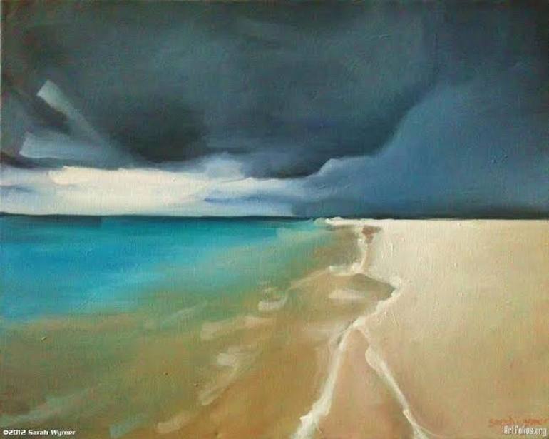 I treasure the exciting feeling of sitting on the beach, listening to the waves mix with a low rumble of thunder...watching a storm roll in. It carries a calmness mixed with excitement I felt as a child watching a storm approach. "Calm before the Storm" was painted in oils on a 20 by 16 inch canva...