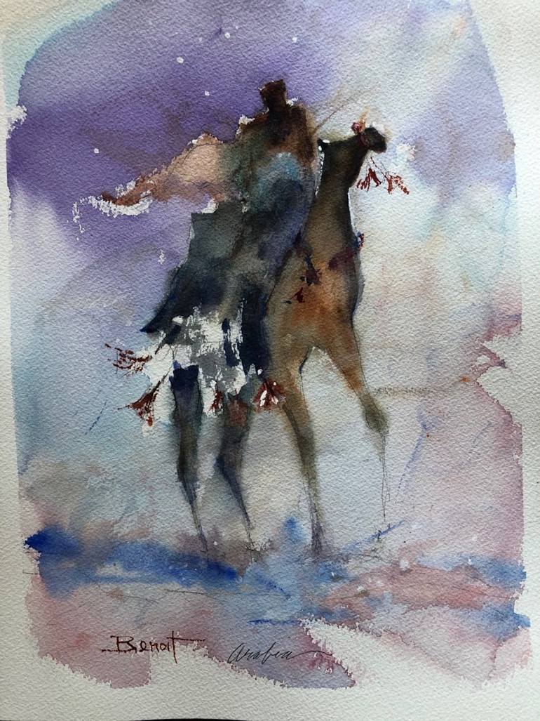 This is a watercolor done on Arches Rough Paper. I have done a few of scenes inspired by" Lawrence of Arabia". I work in watercolor to achieve an interesting and spontaneous look.
