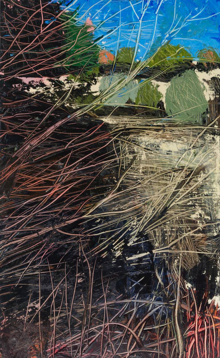 Inspirado en la imagen de un paisaje tras un conjunto de ramas y matojos, tomada en el camino entre El Escorial y Peralejo