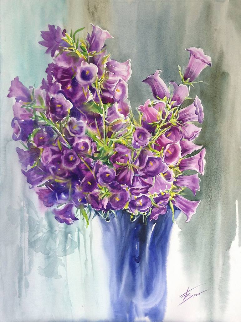Flowers...I love campanulas very much! This watercolor was exhibited in the 1st International Watercolor Biennale in Tirana, Albania 2015