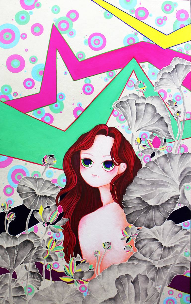 I paint my art work with theme of 俱生我執(구생아집,Gu Saeng A Jip) which means there is substantial ego that is unchangeable. In the other words, my art work tells about obsession of my innate ego; the obstinacy. When we hear obstinacy, it gives us negative feelings and it contains negative meanings but ironically I love my obstinacy. It is the belief that there is immortal and indestructible ego which preside the objects in our body and soul. I tell this story through my painting by creating new world which I created through the obstinacy. This world is fresh and it is not ordinary nor smooth at all. In my work art, Self-attachments and personal stories, depression, Aggressiveness, selfish, honesty are connoted. In modern days, I don’t try to hide my obstinacy. Due to this mind set my subjects of art work are striking existence in anywhere. As this world is filling with selfish of aggressive people who tries(try) to lower my self-esteem, I am more obsessed with my ego to survive in this world which is in dilemmas of depression. I am intoxicated with depression in order to be who I am, therefore I speak and act as I think and feel through my art work . My motto is to create art works with message which is “Don’t make a mistake with locking yourself up by following trends and fake lip-service in this splendid world, disgorge your obstinacy like child without any bias.”