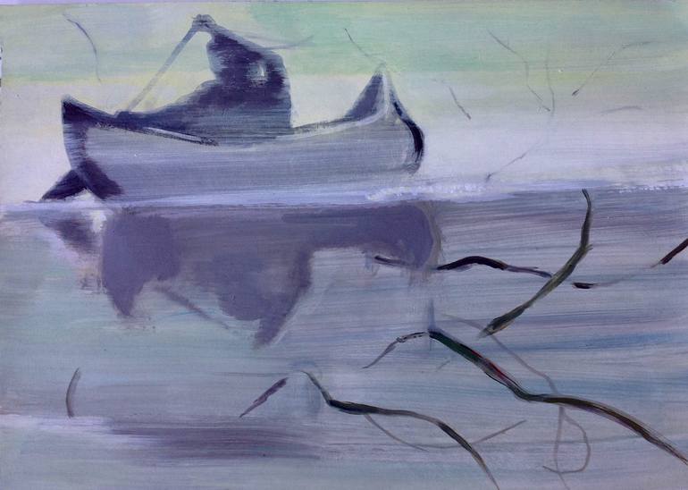 Acrylic on heavy duty paper. Calm, foggy morning, nature.