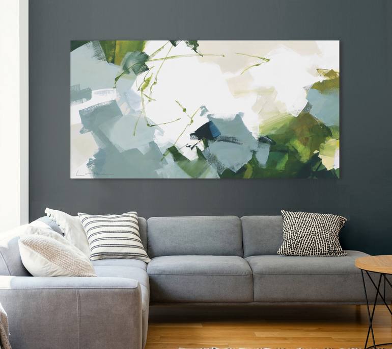 Canopy Bliss comes rolled in a tube to prevent any damage to a very large stretched canvas during international delivery. This is also the most cost effective method for the purchaser and artist. The painting can be stretched onto a frame by your local framer. Canopy Bliss is a new botanical abst...