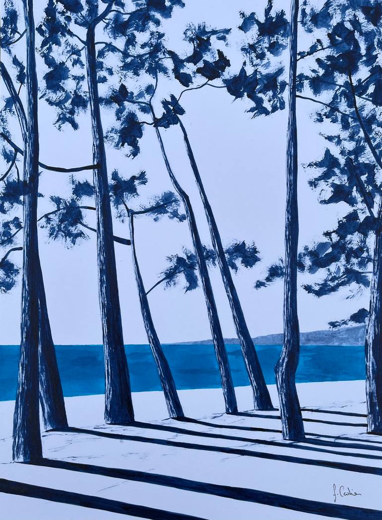 Frederic Cadiou is a French painter, born in 1980. He is from the South Finistère in Brittany, where his studio is based. His paintings represent landscapes, highlighted by a bold use of projected shadows and lights, drawing the eye to the horizon. The fluidity of the lines, the clean contours and the measured choice of colours create calm, serene, contemplative atmospheres. His work suggests the interaction between nature and human perception through a reduced palette and dynamic composition. Adherent number at « La Maison des Artistes » : 45943.