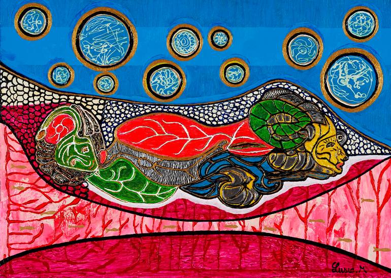 "Capricorn's Descent" is a mystical journey into the world of the zodiac, where abstract forms and vibrant colors come together to tell a story of cosmic energy and the essence of Capricorn. The flowing lines and organic shapes evoke a sense of connection to the Earth, the sea, and the stars—symbols...