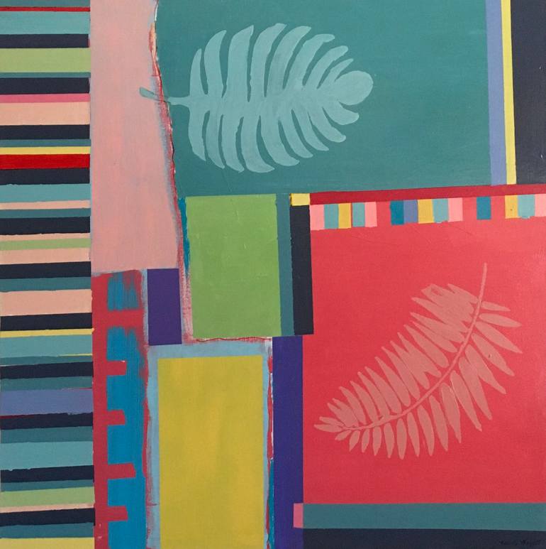 My paintings reflect feelings. Geometric shapes create structure inspired by architecture, landscapes, music and interior design. I use the language of bold bright color and repetition. Texture is important in my work as well as glossy surfaces. I try to create a feel of dynamic movement and rhythm. In every painting I hide a secret .message, like a private telephone number, parts of a news letter that a gallery owner extorted artist and blog them, often a drop of my coffee, a past due notice for an account, a dead bug, an eviction notice, a note about how I feel about someone's bad conduct, and sometimes I paint with tears rather than water. The painting tools I use are brushes, credit cards, a potato masher, chopsticks, and templates.