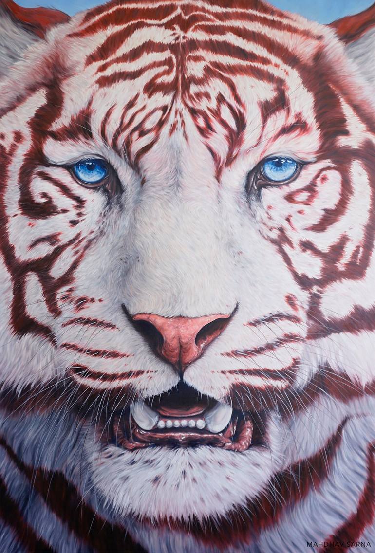 LOCATION: INDIA White Tiger I wanted to create a piece that drew closer in to the details and beauty of a wild animal, creating this piece larger than life size with the aim to emphasise the captivating effect that being eye to eye with wildlife can have. As a definitive symbol of power, beauty an...