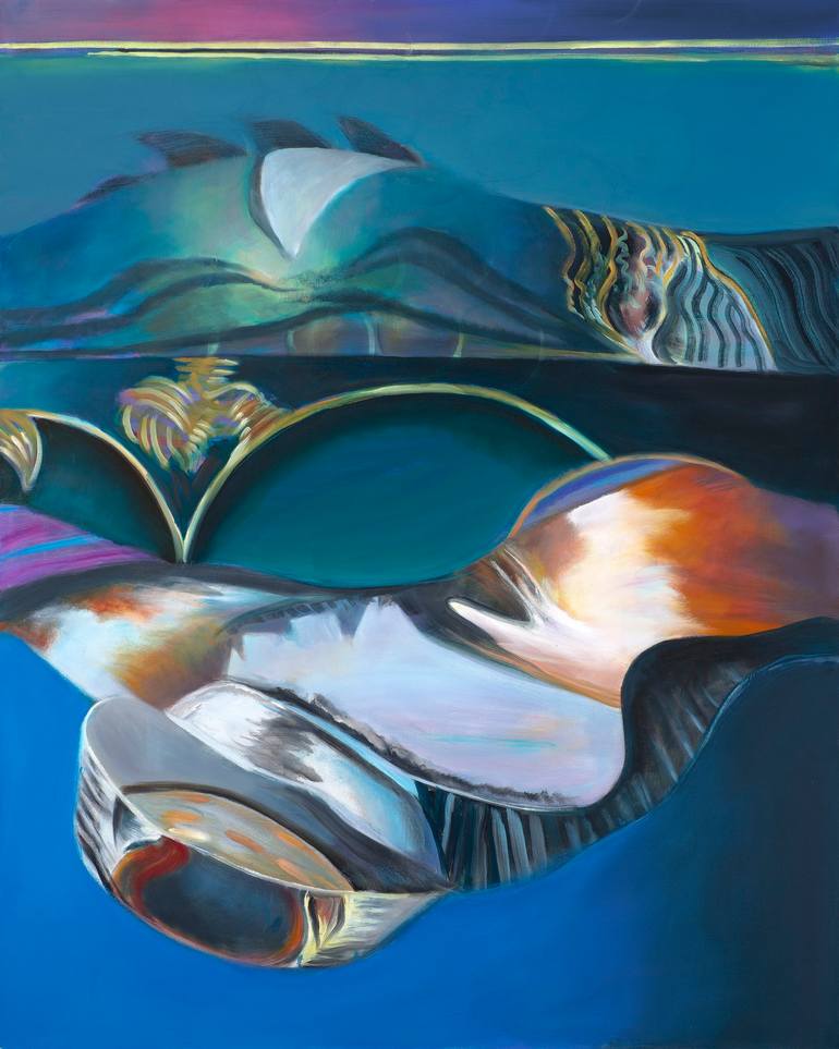Ron’s current work confronts the viewer with surreal forms that border on the familiar while remaining elusive. Never quite natural, yet corresponding to no explicit artificiality, the forms invade the eye even as they saunter leisurely through the canvases. His dynamic pastiche of geometric shapes, fabrics, architectural elements, consumer products, even human figures creates an enigma that blurs the line between the imaginary and the real. Each painting invites us to interpret, yet dances away from our every effort to do so. Instead, we find we must focus on the textures and luminosities of his interlocking, often quixotic forms, and on the play of sharply contrasted intensities of color, opening ourselves to a deep and poignant truth that finds its expression only in silent and reflective viewing.