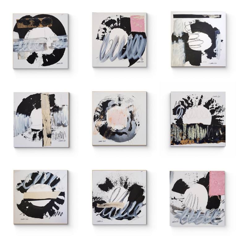 Caroline Weber (1974) from Atelier Weber is a self-taught full-time artist. She lives and works in rural Schwyz in Switzerland. In her newest works, Weber uses raw canvas. Kneeling or standing over the large blank pieces, she pours out the paint directly onto the fabric. Weber plays with pictorial depth by building up veil-like layers of colour that coalesce into amorphous forms. Soft washes with wispy, feathery edges are paired alongside round and oblong forms, some of which have been dripped and splattered with a lively immediacy, while others have been gently pooled, displaying a rounded and meandering edge. The amount of control she exerts over the delineation of these forms is staggering, especially in the contours and outlines of the shapes, and in their joining of neighboring forms. Weber manages a great degree of three-dimensionality in her work. Certain areas create a powerful sense of recessional depth and perspectival space. ARTIST STATEMENT My intention is to capture moments of transience. I draw inspiration from nature and its phenomena. For example when wafts of mist pass through valleys. It looks different every minute. What interests me is how it ultimately works on the canvas. Her work has been published in magazines, newspapers and catalogues. She corporates with international brands like Bombay Sapphire Gin or Visa Cornercard and is a semi-final winner of Artbox Project Barcelona 1.0. In 2021 she got the Certificate of Merit, Luxembourg Art Prize, organized by the Pinacothèque, a private museum located in the Grand Duchy of Luxembourg. Another work can be found in a private museum near Athen in Greece. In her region she is a star. She participated in solo and group exhibitions. Her work can be found in a museum, in corporate premises as well as in private collections all over the world.