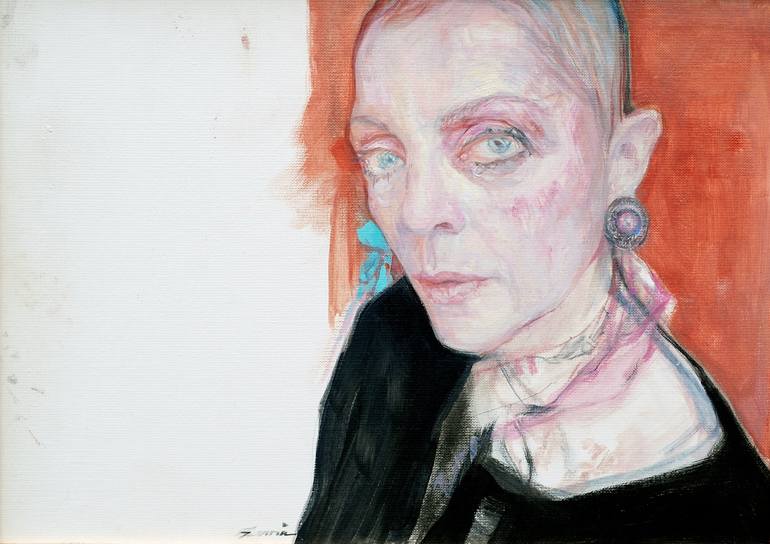 Carmen was a universitary teacher from Timisoara , Romania , who died of cancer . Her stirking regard has captured my atention from the very first second i saw her on the train who took us to the same station. In this portrait , I wanted to capture on canvas an image of her powerful desire to liv...