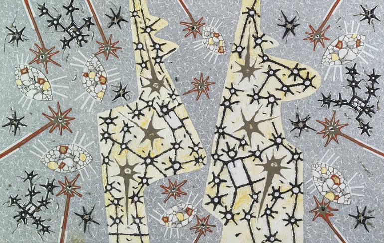 For Giulio Galgani contemporary people live in a dimension where a myriad of signs and symbols overlap and painting can only reflect this reality. The dimension in which the works lead us is that of an artist who bears witness to our era, in which in his multimedia existence roams through video, theatre, music, and performances, though painting currently has a predominant role. His painting has been called "primordial, emotional, informal, a synthesis between figurative and abstract, material" and has been compared variously to Basquiat, Mirò, Klee, Burri, Kandinsky, the comic phrasing of Topor, the graphics of his American friend the graffiti artist Toxic. But the references to artists and techniques are obvious in an artist trained in the awareness of the genesis and developments of contemporary art, whose contamination is the key to cultural growth. With Galgani, art as a dimension of the present comes back into play, for stylistic substance, wealth of contents and ever metamorphosing forms, in a realm dominated by Golems. Per Giulio Galgani l’uomo contemporaneo vive in una dimensione in cui si sovrappongono una miriade di segni e simboli e la pittura non può che rispecchiare questa realtà. La dimensione in cui le opere ci accompagnano è quella di un artista testimone del nostro tempo che, nel suo essere multimediale, spazia tra video, teatro, musica, e performances, anche se attualmente la pittura ha un ruolo predominante. La sua pittura è stata definita “primordiale, emozionale, informale, sintesi tra figurativo e astratto, materica” e diversi accostamenti a Basquiat, Mirò, Klee, Burri, Kandinsky, ai fraseggi fumettistici di Topor, alla grafica dell’amico cartista Americano Toxic. Ma i riferimenti ad artisti e tecniche, sono ovvi in un artista formatosi nella consapevolezza della genesi e degli sviluppi dell’arte contemporanea, di cui la contaminazione è cifra di crescita culturale. Con Galgani l’arte come dimensione del presente ritorna a essere in gioco, per spessore stilistico, ricchezza di contenuti e forme in continua metamorfosi in uno scenario dominato dei Golem.