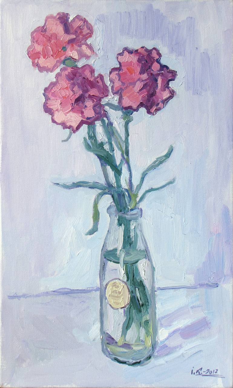 "Carnations". Medium: oil on stretched canvas. Original size: 53x31.8 cm. Created in 2017.