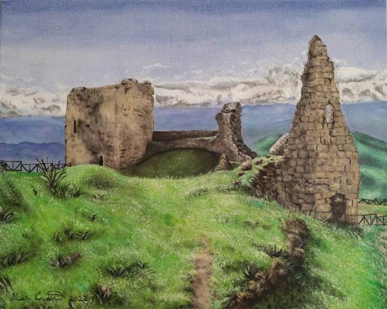 The painting depicts the Castle of Agira, seen from behind, located in the upper part of the town. It has very ancient origins, in fact it was built as a fortress to protect the territory. From up there you can enjoy a breathtaking view, in fact I couldn't help but paint a picture.