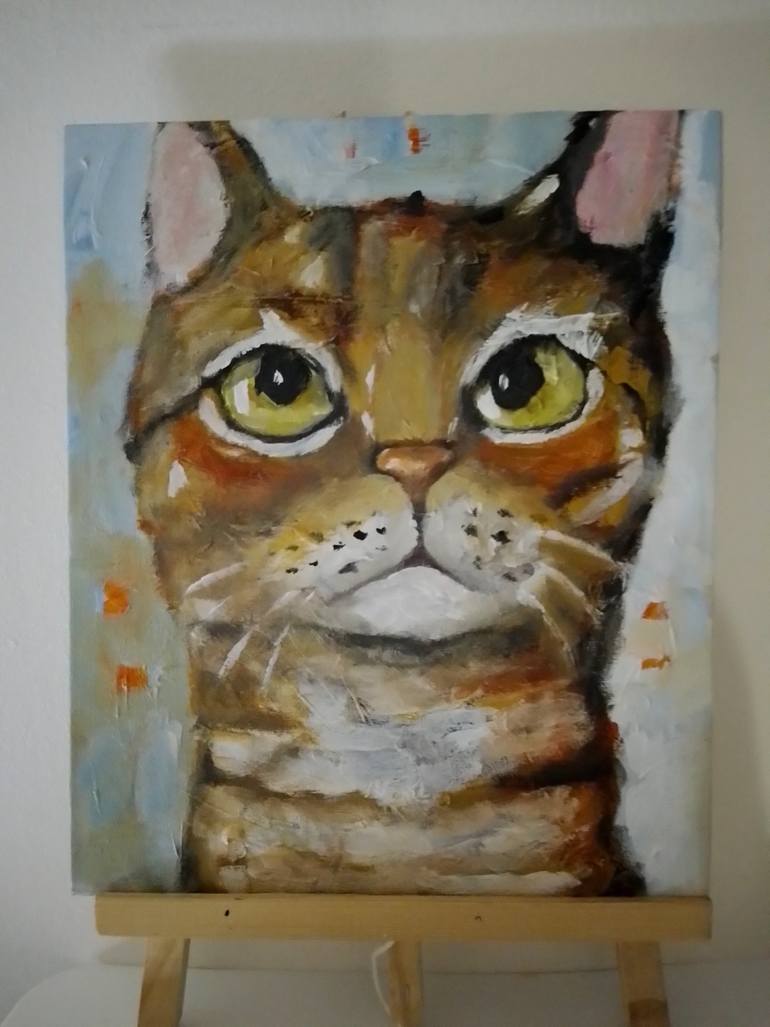 Cat painting Vintage style for home decoration.Great addition to home collection for cat lovers.Made on Impressionism style.Warm colours make it useful for many decoration.