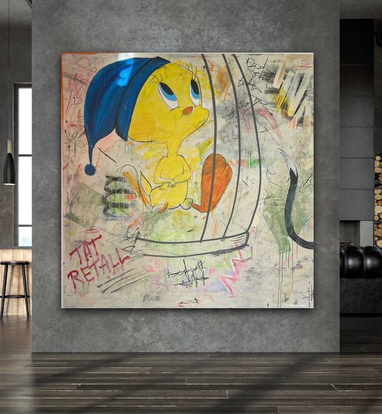 I love to bring the street art home! Piece of the street wall in your nice home. That’s why I always start my artwork by painting street art graffiti abstract look. Then I add a classic character. Can be from a comic book or a cartoon.