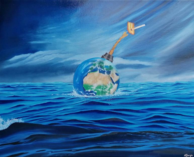 L'artiste a peint ce tableau suite au conflit géopolitique que le monde vit en 2022. Nous voyons la Terre qui est enclin à exploser.