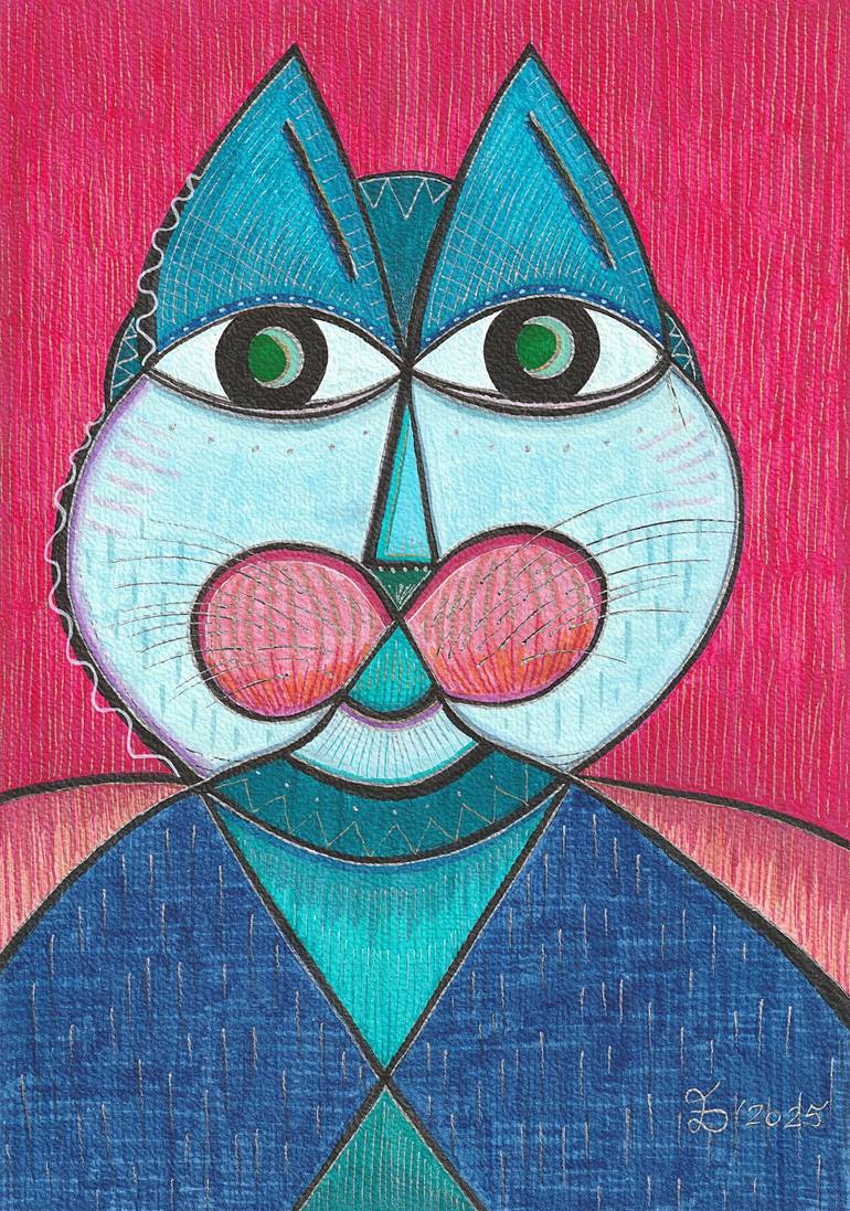 Catman. Painting on paper by Ewa Dura. Markers on paper 300 g/m2, size A4 (21 x 29,7 cm). Original painting. Metallic effect. The painting is sold with a certificate of authenticity. It is signed and dated by the artist. Please note! The artwork will be delivered unframed. The artwork is from a ...