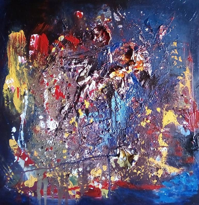 An abstract artwork created on canvas using acrylics, papers and sand. It depicts how love can enter deep into someone's soul. Hard to get rid of. This artwork is Unframed and signed in front. Art for homes. Decorate your home with this colorful artworks.