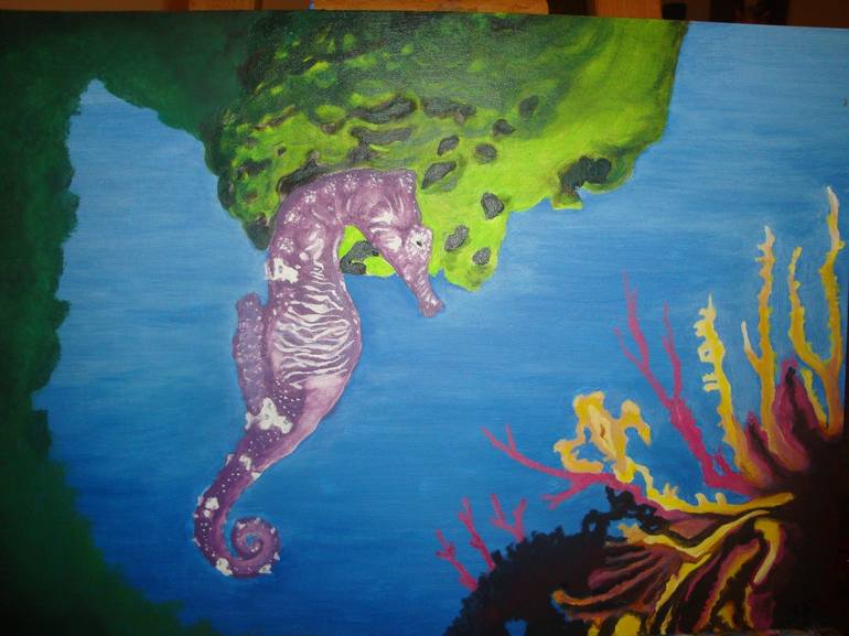 Descrivere in maniera dettagliata la profondità del mare come se fosse visibile all'interno di un acquario o immergendosi tra di esse. Gli Ippocampi tra gli animali più affascinanti del mondo marino