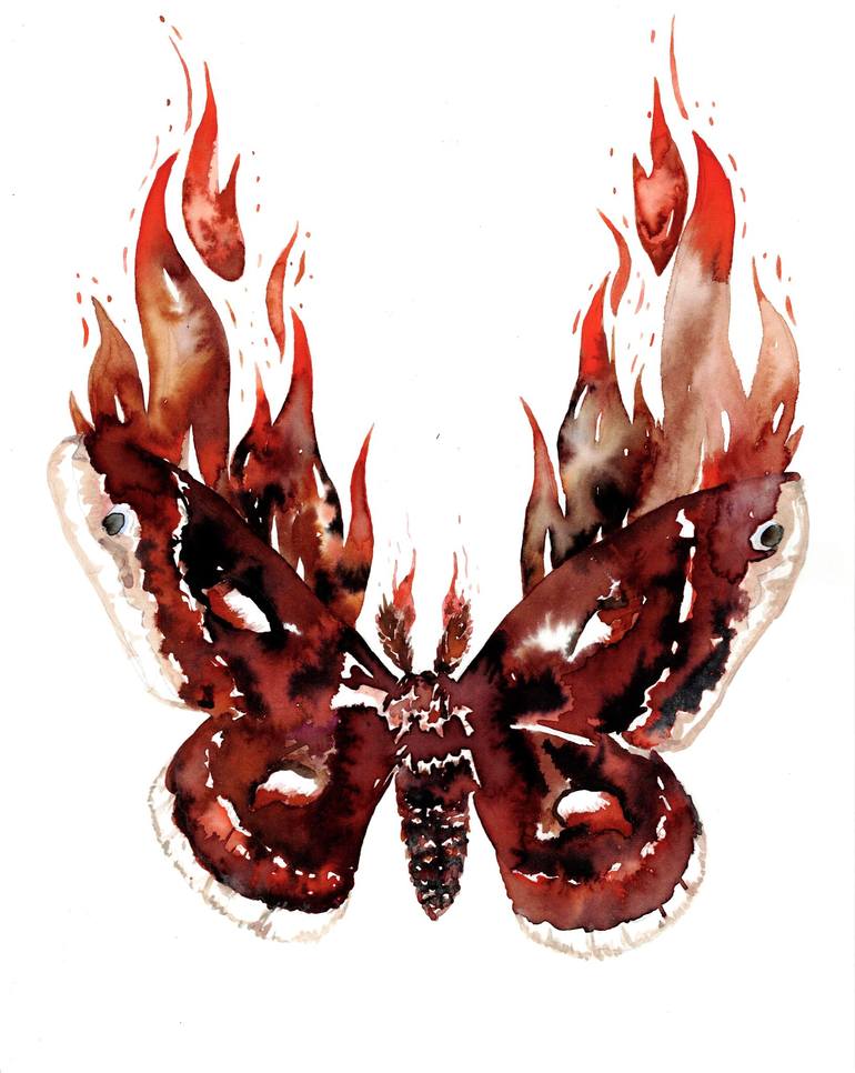 Watercolour Ink on archival paper. Unframed. Like a moth to a flame…