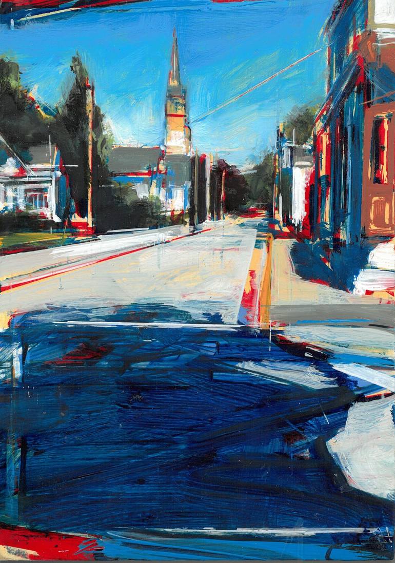 My work explores ideas of place through rural and urban landscapes, as well as interior spaces, shaped by travels across the United States, Canada, Fiji, New Zealand, Australia, and closer to home in the UK and Europe. These varied environments inform my visual language and sensitivity to atmosphere. I am particularly interested in structure, perspective, light, and shape—using them not simply to describe a scene, but to interpret it. Strong linear elements and considered spatial depth guide the viewer’s eye, while light and colour establish mood and presence. Rather than creating literal representations, my paintings seek to evoke the feeling of inhabiting a specific moment and space. Influenced by artists such as Edward Hopper, Richard Diebenkorn, and Ben Aronson, I am drawn to painting’s expressive capacity—its ability to convey atmosphere and emotion beyond the limits of language.