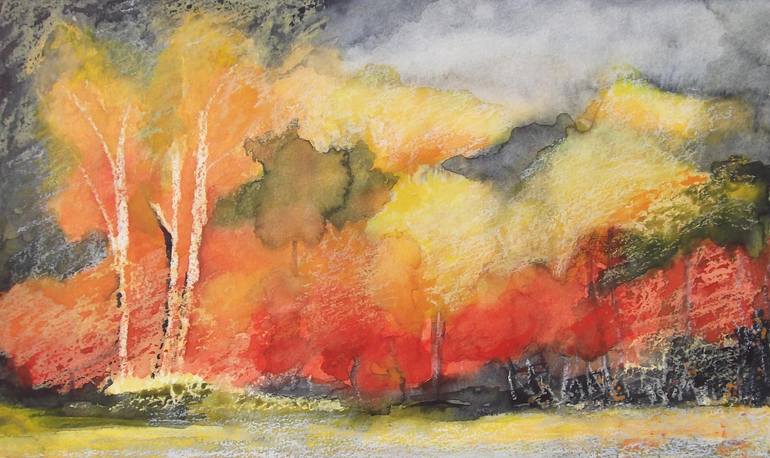 Inspired by Park Downs, Banstead. Atmospheric landscape Watercolour and Mixed media