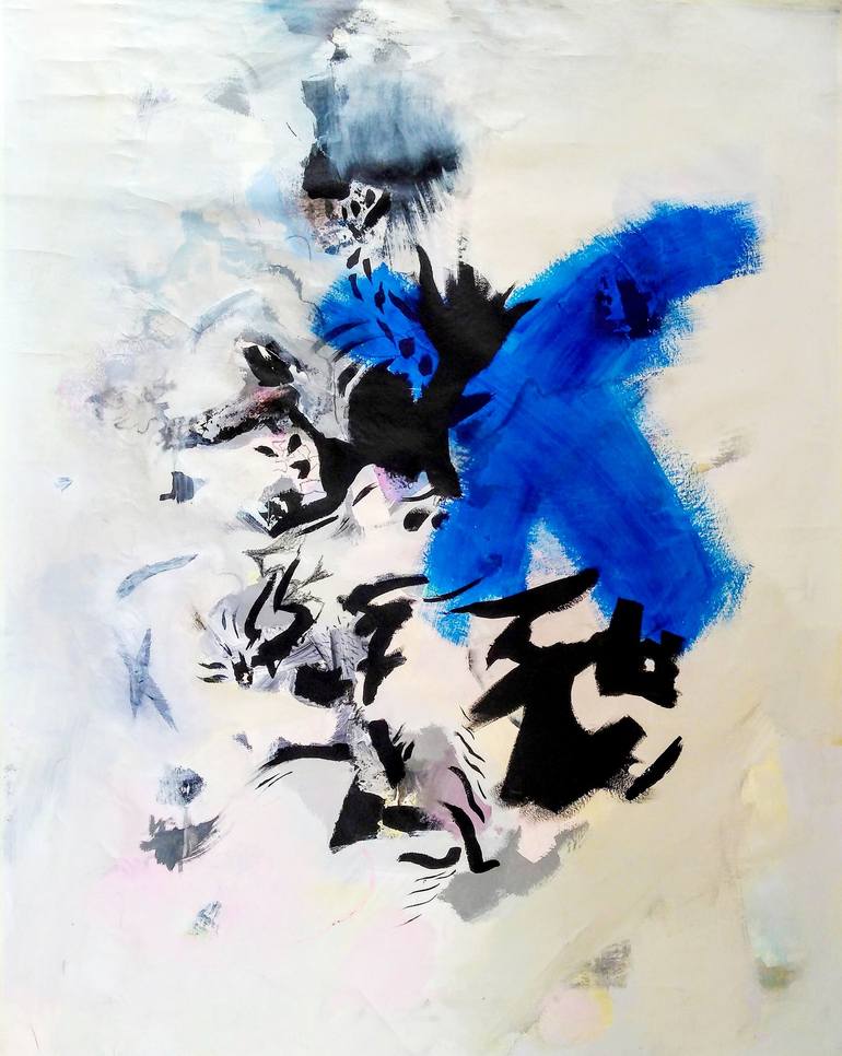 This work is based on experimentation and play and is the result of expressive strokes on canvas. I usually use canvas and cotton paper as supports, and a mixed technique (charcoal, ink, acrylics, watercolour, markers)