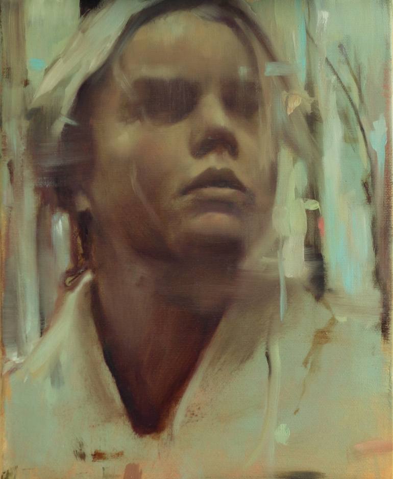 The paintings are always very figurative in which the focus is often on the face. However, these are not portraits as such. When I portray something, it is their understated and introspective posture, and they reflect my own introspective quest. The realization that identity is really just a story. It doesn't lead me to answers about who I am, but what I am. My body is an energetic vessel that I experience in my consciousness, not the other way around. We were never taught to look from that point of view. In an analytically programmed mind, this does not seem rational. The thinking exercise starts very intuitively at first, but gradually seeps back in rationally. The titles that some works are given can contribute to the expression of these thoughts, but I prefer not to restrict the freedom to experience the paintings too much. Painting, for me personally, foremost arises from an undeniable necessity and inexplicable urge. I'm not doing this as a conscious choice