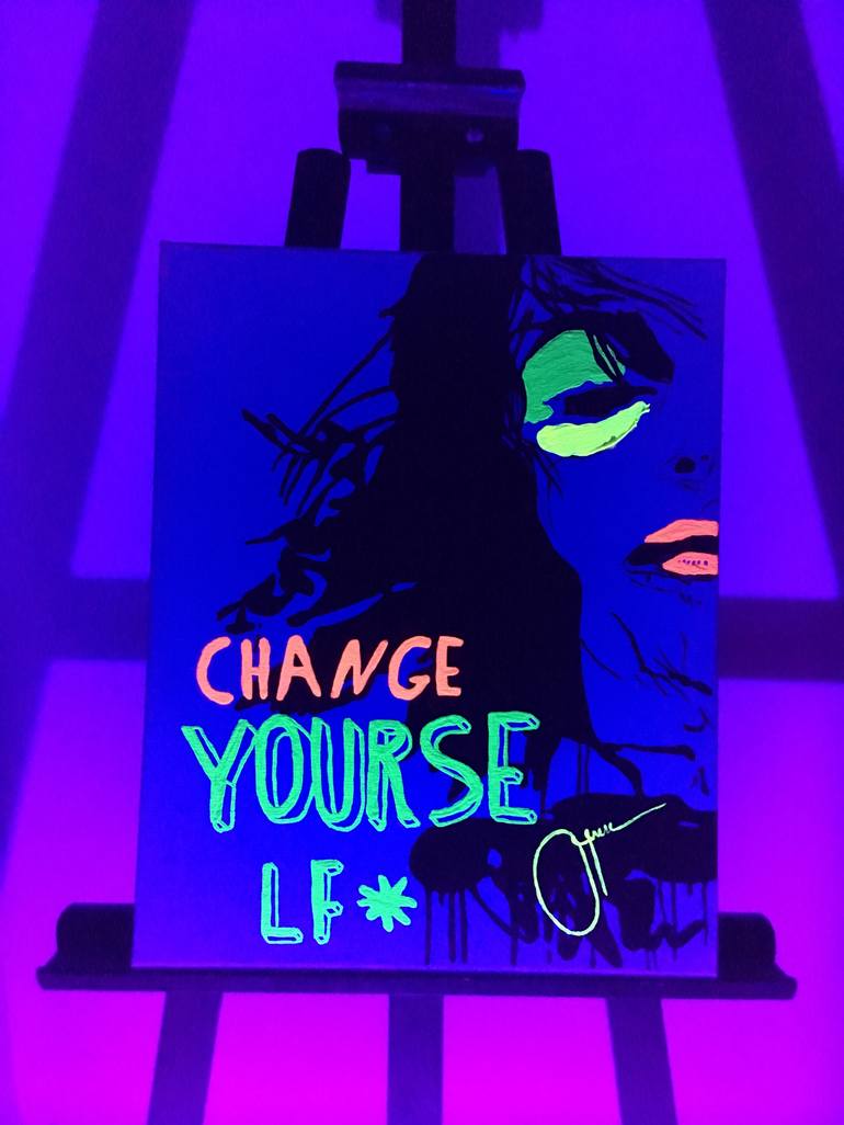 Neon on Canvas. Ready to hang, no framing required, varnished, signed. You have 2 painting in 1: daylight and nighttime version. You can change yourself if you tell yourself you can. But you have to want to make the change. *Blacklight is not included.