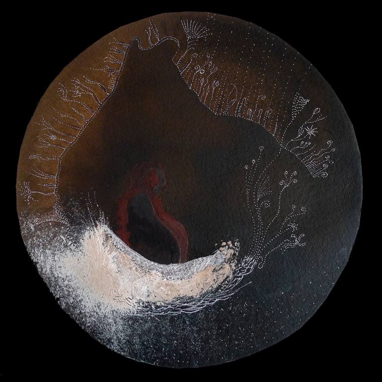 Walnut Ink, Indian ink, acrylic and tempera on Arches paper Tondo ø 32cm - 2019 This work is a part of a serie (1 of nine "tondo") talking about the epic poem "Inferno" (Dante). The Inferno tells the journey of Dante through Hell, guided by the ancient Roman poet Virgil. In the poem, Hell is depic...