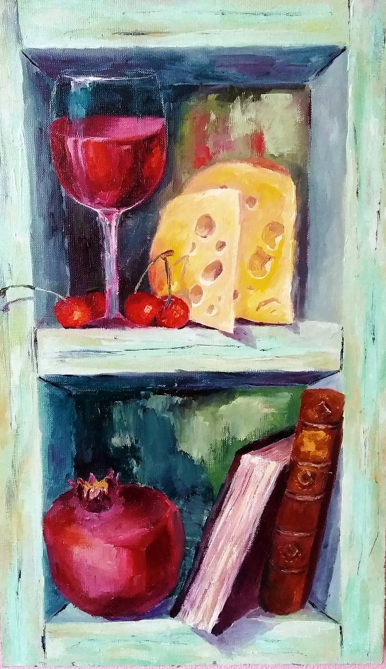 Food Paintings Original painting, oil on canvas, Nature painting, modern art, impressionism. Red, Orange, Blue, Yellow, Turquoise colors. Every painting is signed and comes with a Certificate of Authenticity and is wrapped carefully for shipment around the world to ensure safe arrival. The colors...