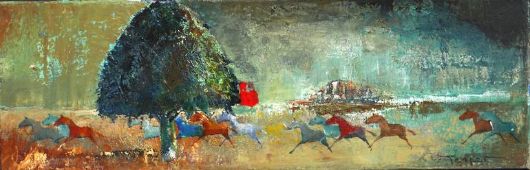 Une troupe de chevaux au galop donne beaucoup d'énergie à ce tableau et un grand sentiment de liberté.