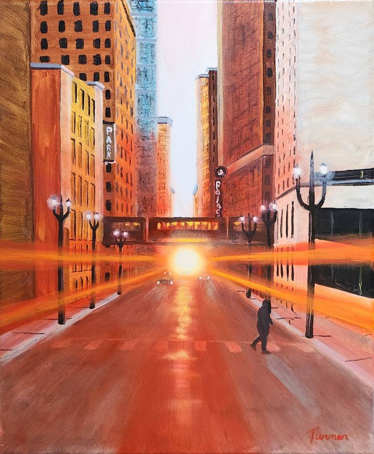 Introducing the Chicago Equinox painting (14x18"), capturing the essence of a vibrant cityscape at sunrise on the vernal Equinox 2025. This stunning piece features a unique blend of warm colors and intricate details, showcasing the beauty of urban life against a backdrop of a rising sun. Perfect for...