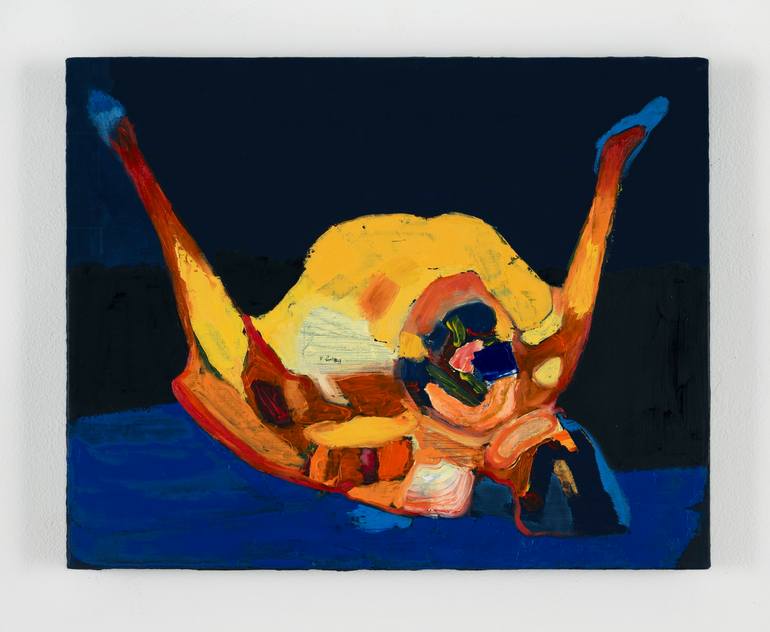 This painting portrays a couple in bed, engaged in the act of making love, viewed as a thermal image, suggesting an unseen, secretive observer. The work is rooted in the gestural painting methods of abstract expressionism, emphasizing intensity and raw emotion through dynamic brushstrokes and vivid ...