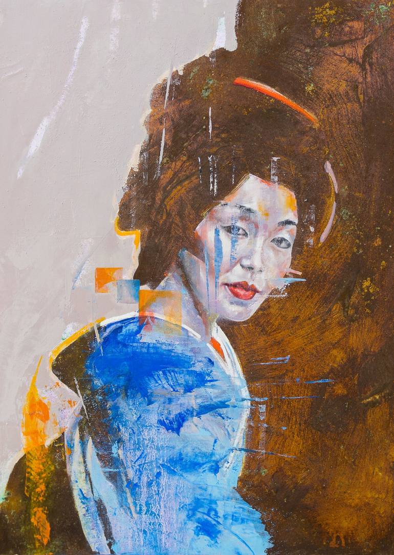 "Chihiro" is a portrait of a geisha. It's a figurative piece heavily influenced by abstraction and expressionism, lending it a distinctly contemporary character. It's part of a series where rust serves as a common denominator. This time, I've combined oil and acrylic with iron, bronze, and copper ox...