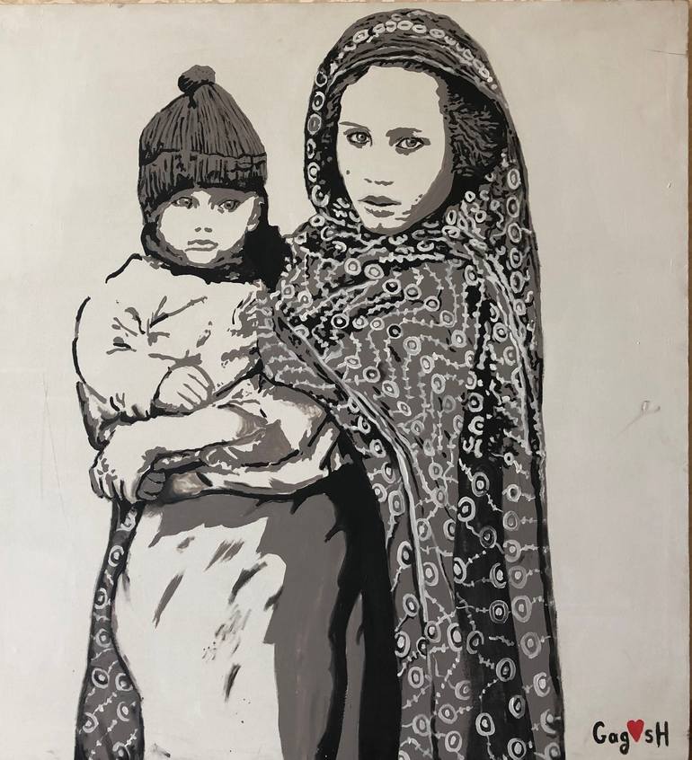 The artwork was originally painted as a stencil in the streets of Tbilisi (Georgia) to raise awareness of social inequality, poverty and people in need.