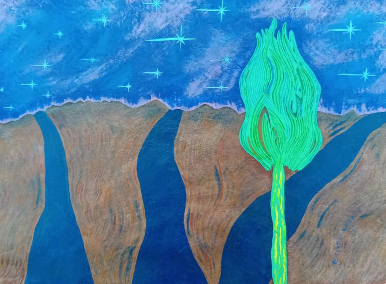 Three roads are reflected by the nightlight, symbolizing three choices. The night symbolizes darkness, i.e. ignorance, and the stars symbolize hope. We are often unaware of the extent to which anxiety and stress are part of our daily lives. Sometimes we are depressed, but we are not conscious about ...