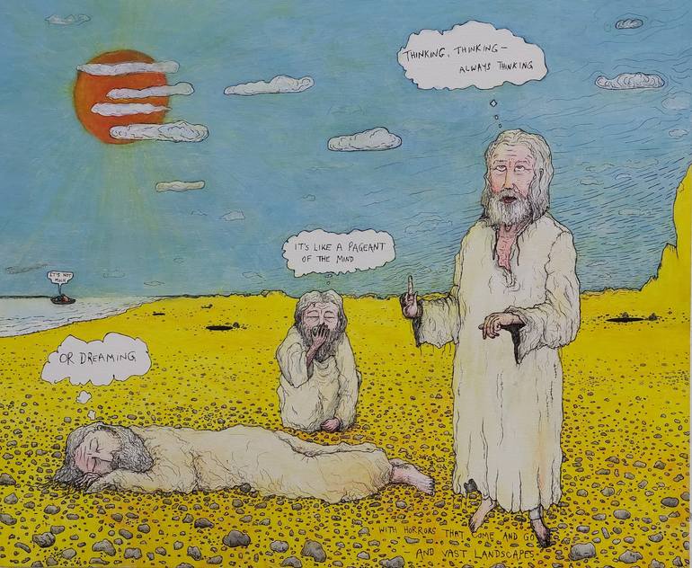 This image came out of listening to religious music as a starting point, and from a combination of a sense of isolation and an increasing interest in geological time! We start from dust and return to dust. The three poses of the Christ-like figure, musing on different thoughts, I guess gives the ima...